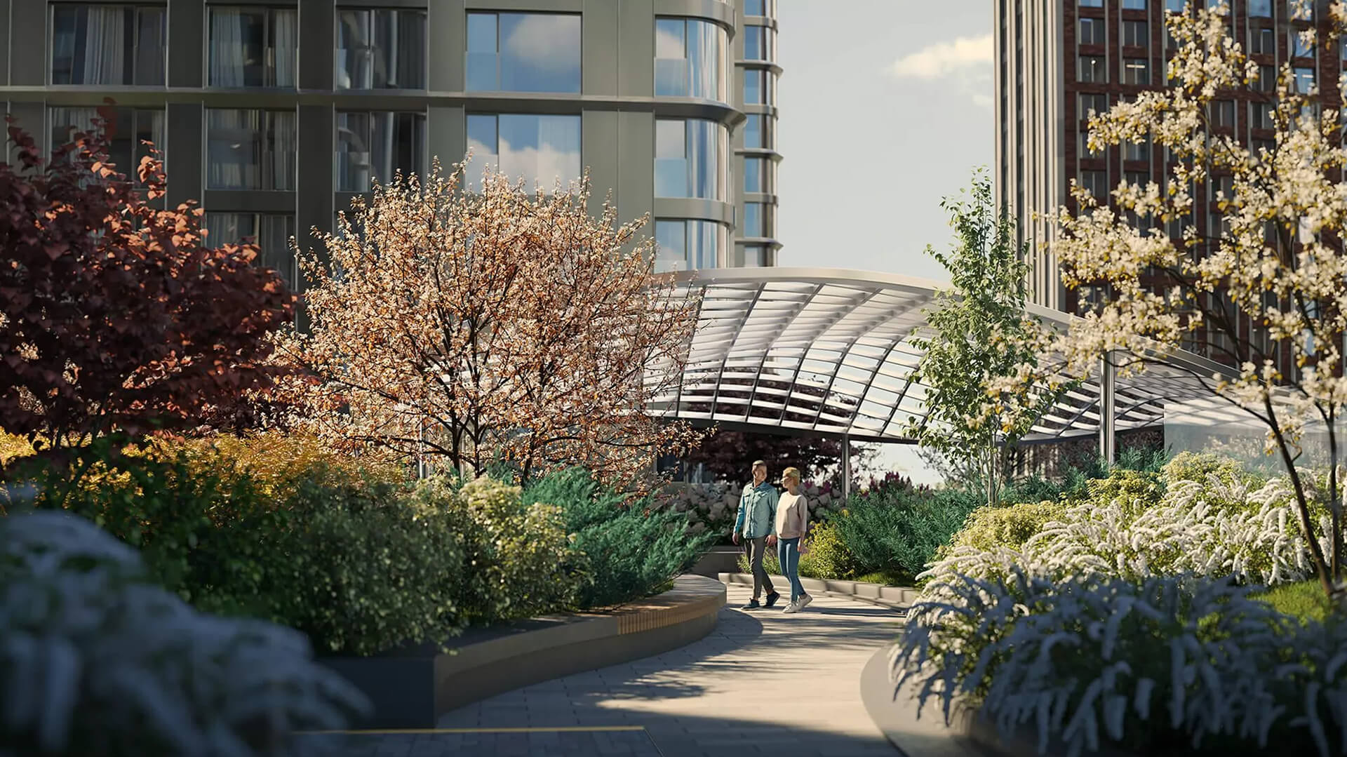 Планируется создать парк вдоль Москвы-реки с велосипедными и беговыми дорожками. Парк будет соединять все кварталы с рекой и сделает район Покровское-Стрешнево еще более привлекательным. Пешеходная дорожка, лесная тропа с маленькими балконами для просмотра и деревянными скамейками, велосипедные дорожки с хорошим покрытием, места для отдыха под деревьями - все это будет украшать берег Москвы-реки. Основной акцент - понтонный причал, вход на который будет прямо с главной площади жилого комплекса.