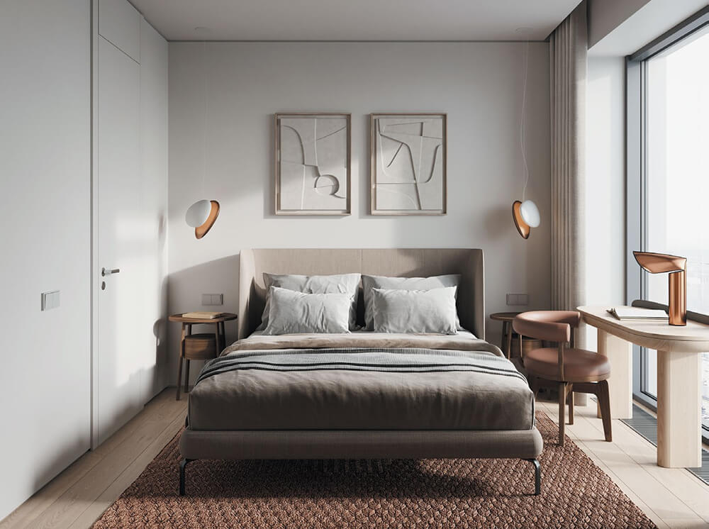В квартале есть разные планировки квартир - от 1-комнатных до 4-комнатных, от 36 до 144 м². Квартиры продаются с отделкой MR Base, в которой уже есть все коммуникации, стяжка, выключатели. Вам нужно будет выбрать только окончательную отделку стен, полы, сантехнику и мебель.